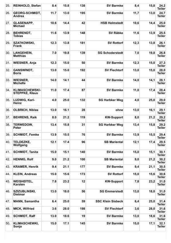 Bester Teiler Tagessieger |