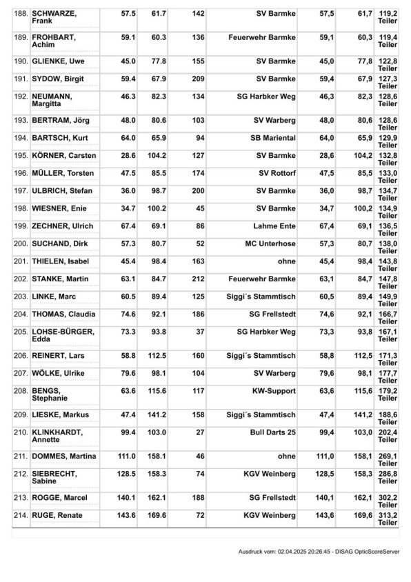 Doris Kurzke 1,0 Alex Bewersdorff 1,0 |